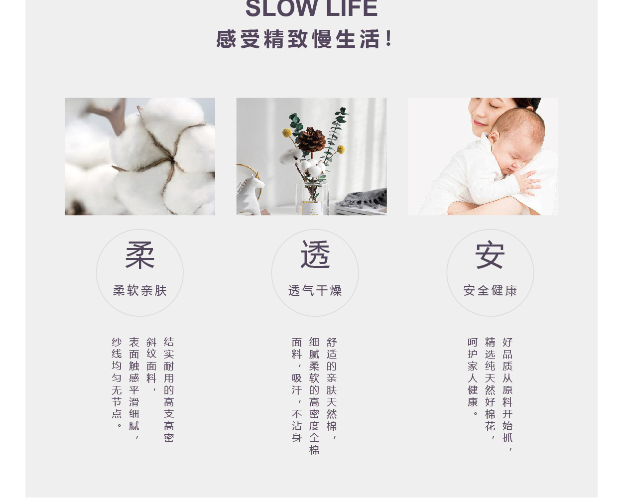 描述:100%纯棉面料、活性印花工艺、不脱色不掉色、健康环保 全工序纯棉精织,柔软舒适,吸湿透气,带给您舒适的睡眠体验。