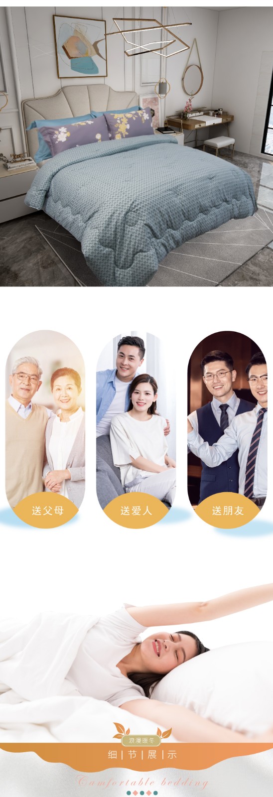 描述:100%聚酯纤维棉,大方设计,时尚两色任选 优质环保印染工艺,无任何甲醉,增白剂,更健康,跟保暖,更实惠