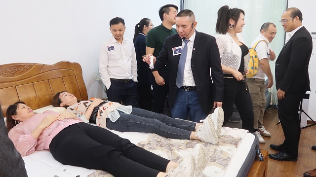 嘉宾体验音乐按摩床垫图