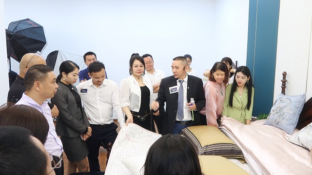 图为严总讲解怡情床垫