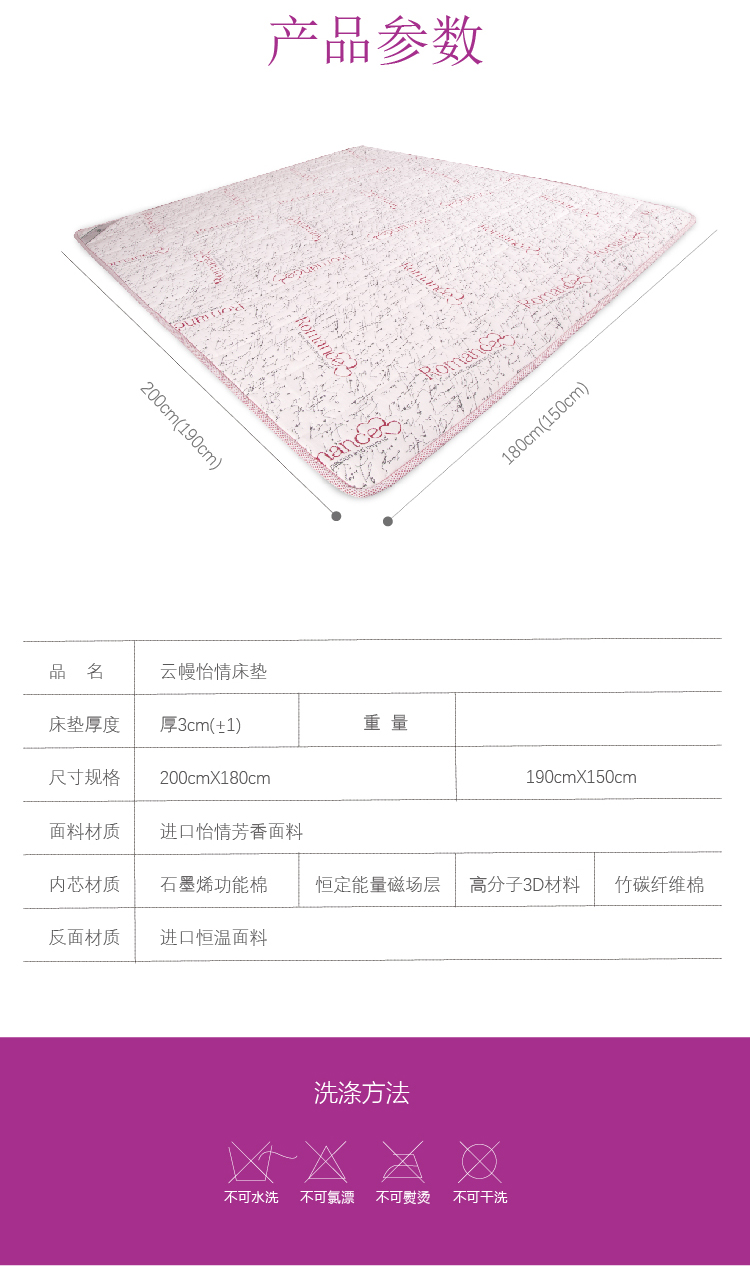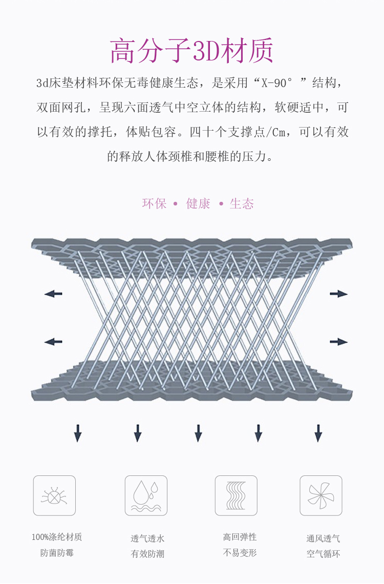 内芯材质:石墨烯功能棉、恒定能量磁场层、高分子3D材料、竹炭纤维棉